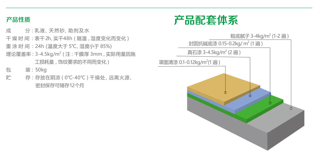天然真石漆是由環(huán)保型高分子乳液聚合物和能構(gòu)成仿石材紋理的天然大理石骨料、助劑等材料組成的厚質(zhì)涂料 , 其外觀如石頭一般自然、穩(wěn)重、氣派并且附著牢固 , 具有優(yōu)異的耐候性、憎水透氣性、柔韌性和抗沖擊性 , 符合國(guó)家規(guī)定的 JG/T24《合成樹(shù)脂乳液砂壁狀涂料》標(biāo)準(zhǔn)。其裝飾性具有很強(qiáng)的仿石材及歐式風(fēng)格效果 , 是當(dāng)今社會(huì)高檔小區(qū)、別墅、公共建筑的主流裝飾材料。適用于所有平整的建筑物內(nèi)、外墻礦物質(zhì)材料基層 ,同時(shí)也是外墻外保溫體系理想的面層裝飾材料。